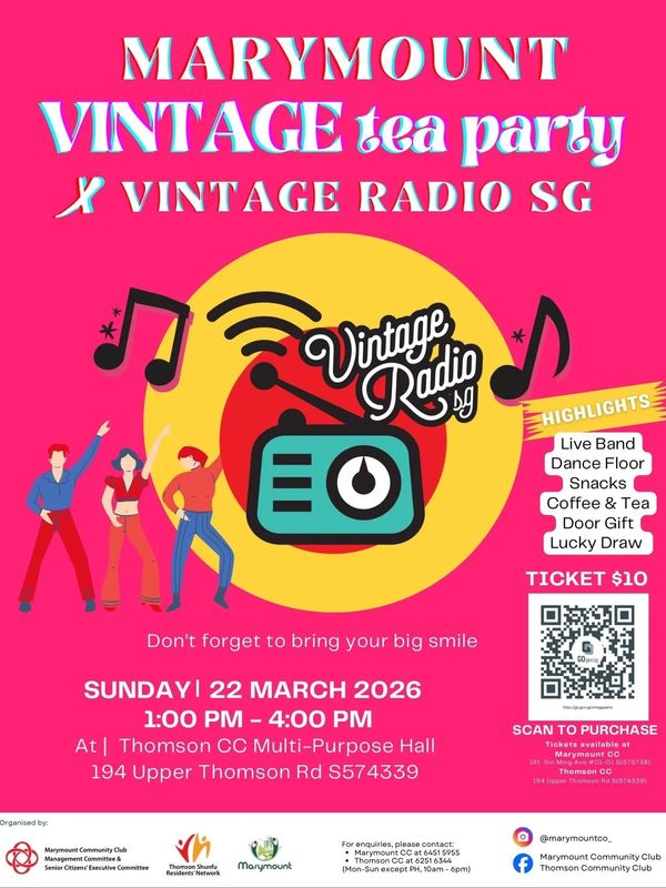 Remember back in the day where on weekends, you will dress up and head out for the Tea Dance? Its time to re-visit that! Yes, a bit of inflation but for $10, you get a live band, great music from back in the day, snacks, coffee or tea, a door gift and Lucky Draw .... very good deal!! So mark you calendar, free up your time and come with your friends and khakis! just scan the QR code to purchase your tickets!